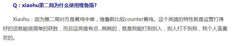 从以上赛后采访图可以知道,韦鲁斯这英雄优势在于可以利用自身的长距离攻击范围对敌方英雄造成伤害,属于poke流的一种,只要运营的好,胜利还是比较简单就可以收入囊中。比较counter黄鸡和一些短手的AD英雄等等,在召唤师技能上要根据情况选择例如面对劫的时候可以带净化或者虚弱。