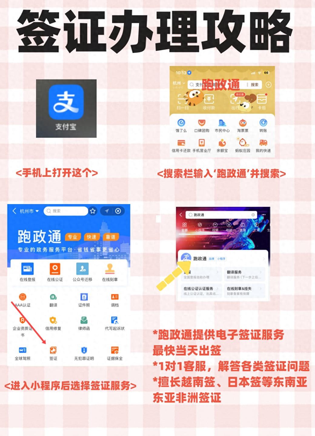 传统方式可能需要你亲自前往领事馆或签证中心递交材料,但如今,线上办理已成为新趋势。你可以尝试在支付宝上搜索“’图片里的小程序‘”,这是一个便捷的专业签证服务平台。只需几步操作: