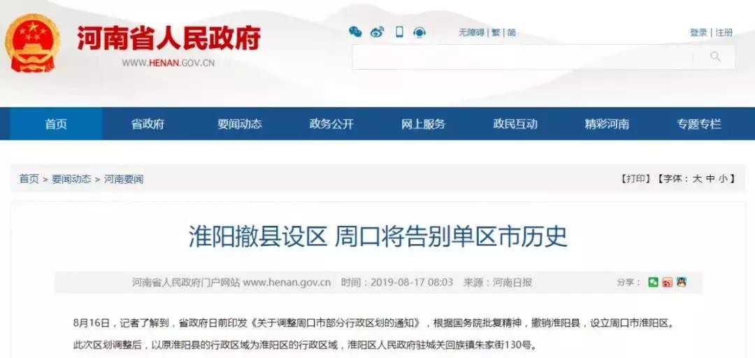 据河南省政府官网消息,日前,河南省人民政府印发《关于调整周口市部分行政区划的通知》,根据国务院批复精神,撤销淮阳县,设立周口市淮阳区。