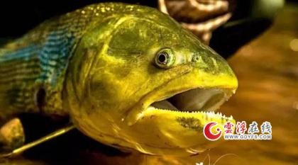 这种被称为黄金河虎的鱼,全身鳞片散发出金色的光芒,体长最大可以过米。它们行动迅速,性格急躁,力气非常大,还长着一口非常尖锐的牙齿。
