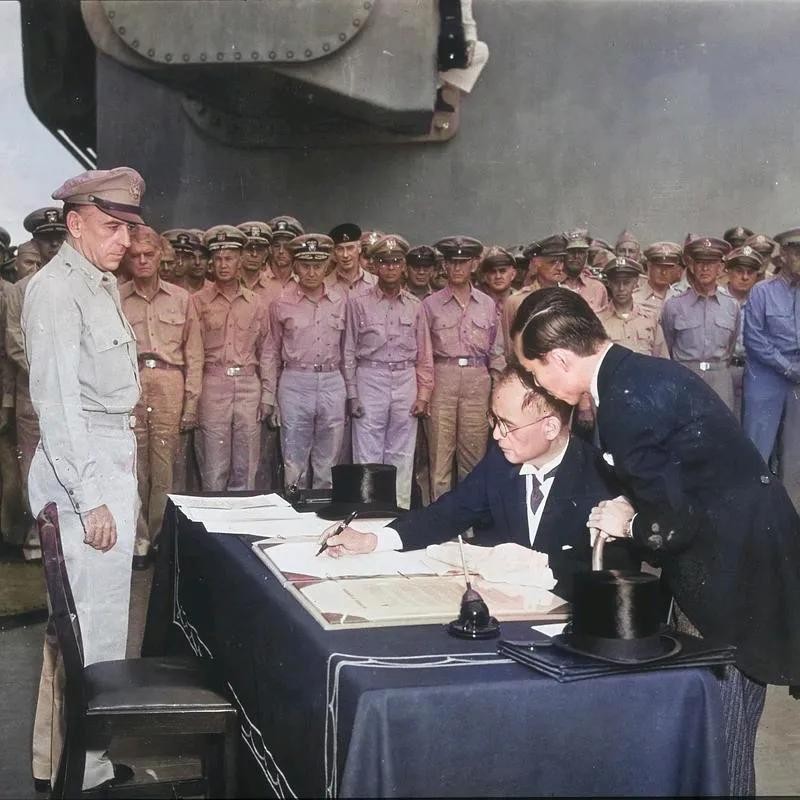 签字仪式于当地时间上午9时举行。仪式上,重光葵代表日本政府签署投降书,标志着日本正式结束敌对状态。随后,盟军代表也在文件上签字,确认了这一历史性时刻。整个仪式庄重而简洁,充满了历史的厚重感。