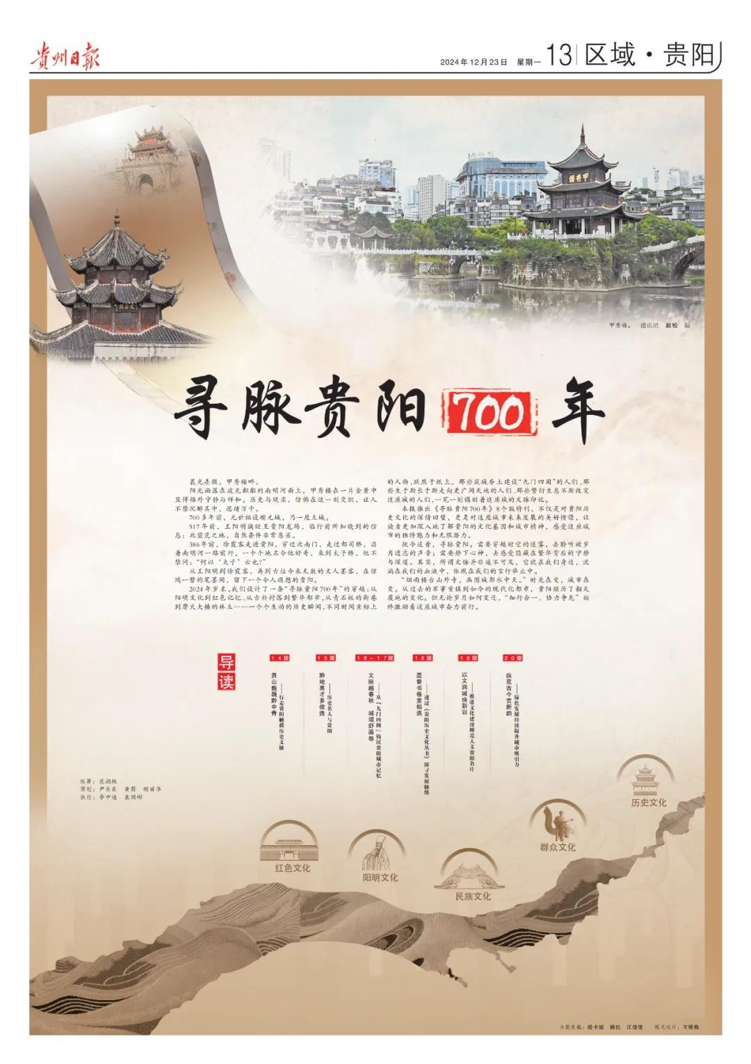 贵州日报推出《寻脉贵阳700年》8个版特刊,不仅是对贵阳历史文化的深情回望,更是对这座城市未来发展的美好憧憬,让读者更加深入地了解贵阳的文化基因和城市精神,感受这座城市的独特魅力和无限潜力。