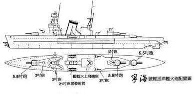 宁海号轻巡洋舰的武器装备布局图