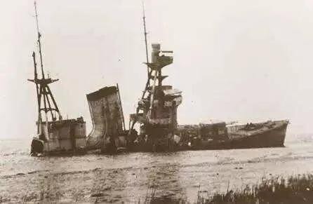 受伤搁浅的宁海号轻巡洋舰