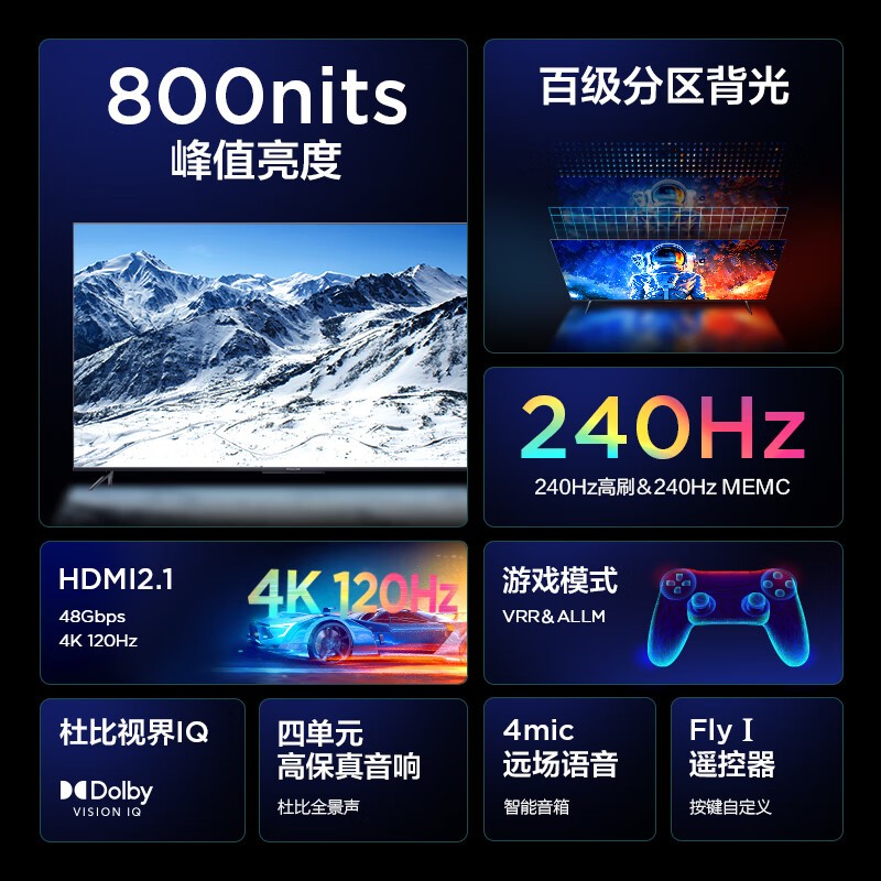 购买建议:日常家用,高清观影,游戏高刷,适用领域颇广,所有入门级需求场景。85吋重点推荐。