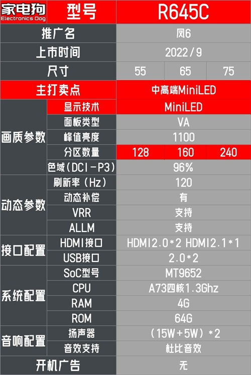 无论是峰值亮度还是分区数量,无论是广色域还是高刷,哪怕SoC都是最新的P700,你完全可以把它看做去年的Q10G的姊妹款。