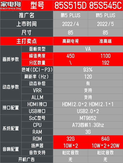 虽然它俩的后缀都是“5 PLUS”,但战斗力不在一个水平上,并没有什么可比性,仅仅是在峰值亮度和分区数,这两个对画质影响最大的参数上,它俩就差大了——当然,价格也差不少呢。