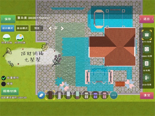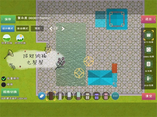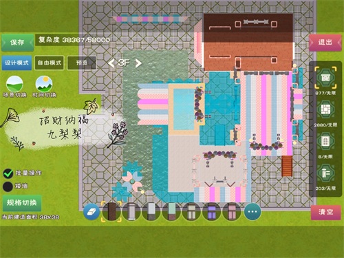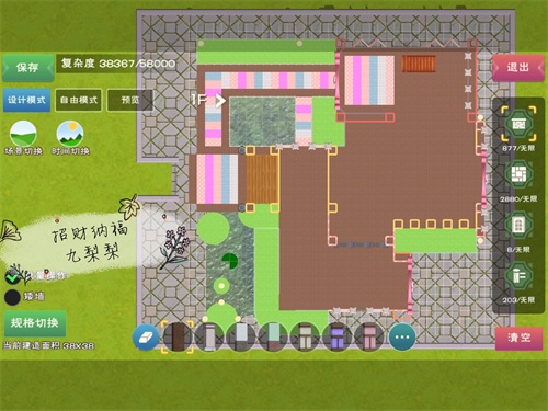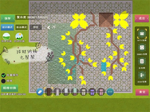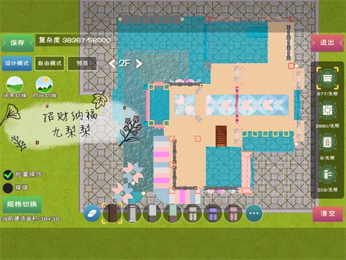 以下附上平面图,看不清的地方参考视频吧→创造与魔法:乱花渐欲迷人眼,九梨梨11级家园《招财纳福馆》