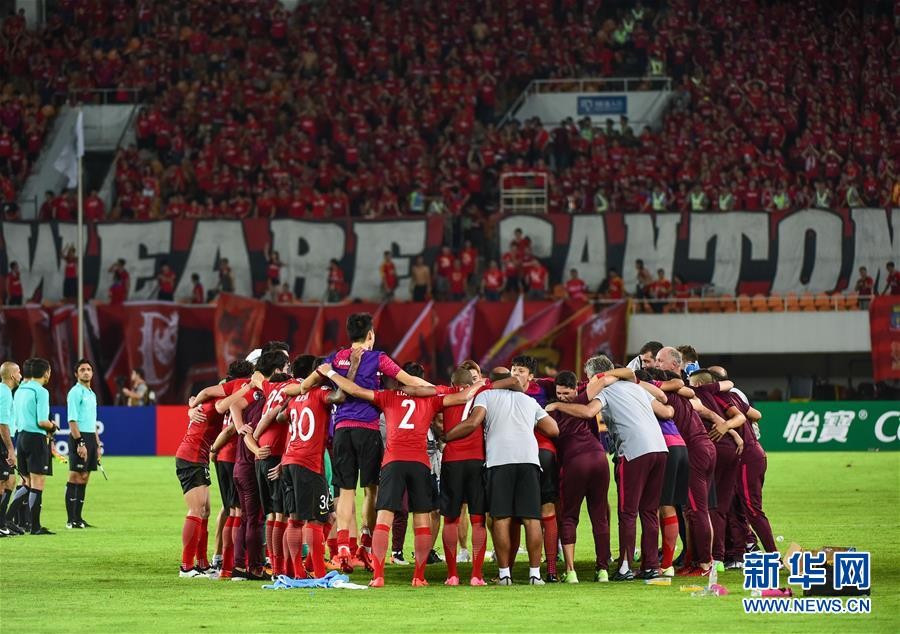 ↑9月12日,广州恒大队在点球大战前集体鼓劲。 新华社记者刘大伟摄