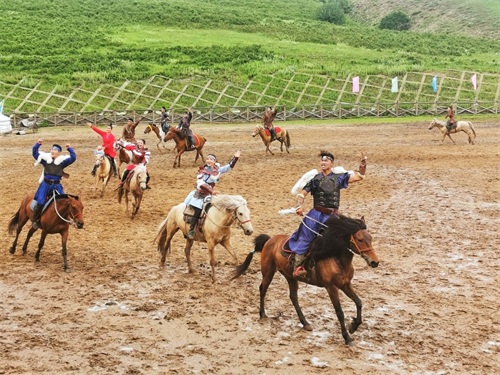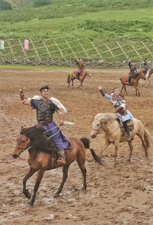 杭盖草原上的文旅融合项目,原生态的实景马术演示,其核心是以故事贯穿,起承转合之间,原住民牧民近乎狂野的个性张扬于马背。其血脉喷张,其铁汉柔情,无不令观者或随之呐喊,或潸然泪下。