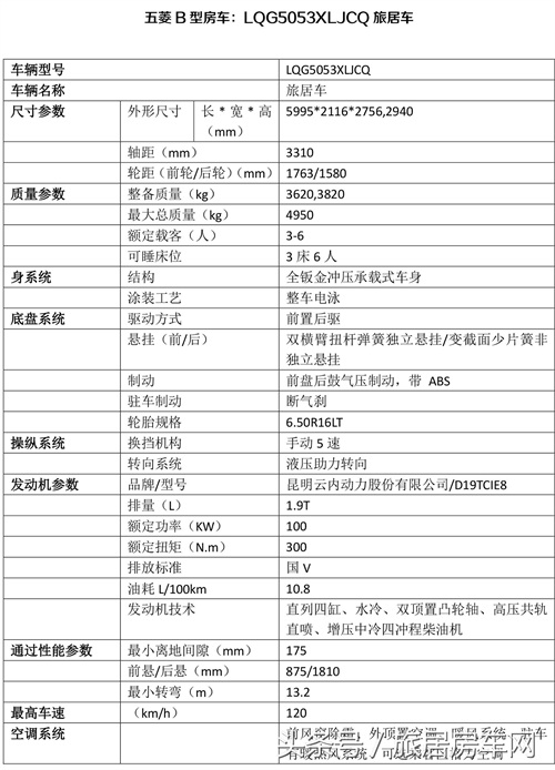 继五征推出C型亲民房车以来,引起车友的高度关注,现五菱也发布了B型房车。现将五菱的详细配置附下表。