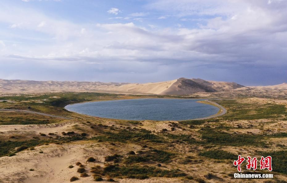 9月27日,航拍青海省海北藏族自治州海晏县关停的青海湖沙岛景区内的太阳湖。目前正值青海旅游高峰期,但沙岛景区大门紧闭,游客以往的足迹被灌木植物覆盖,曾经的娱乐体验项目也被连年上涨的湖水淹没。28日,青海省海北藏族自治州海晏县林业站站长马文虎告诉记者,2017年沙岛景区关停,通过补种灌木树种、草种进行生态修复,目前沙岛内林木成活率达80%以上,林草植被覆盖度达60%至70%,曾经的沙漠披上“绿衣”,生机勃勃。(无人机照片) 中新社记者 马铭言 摄