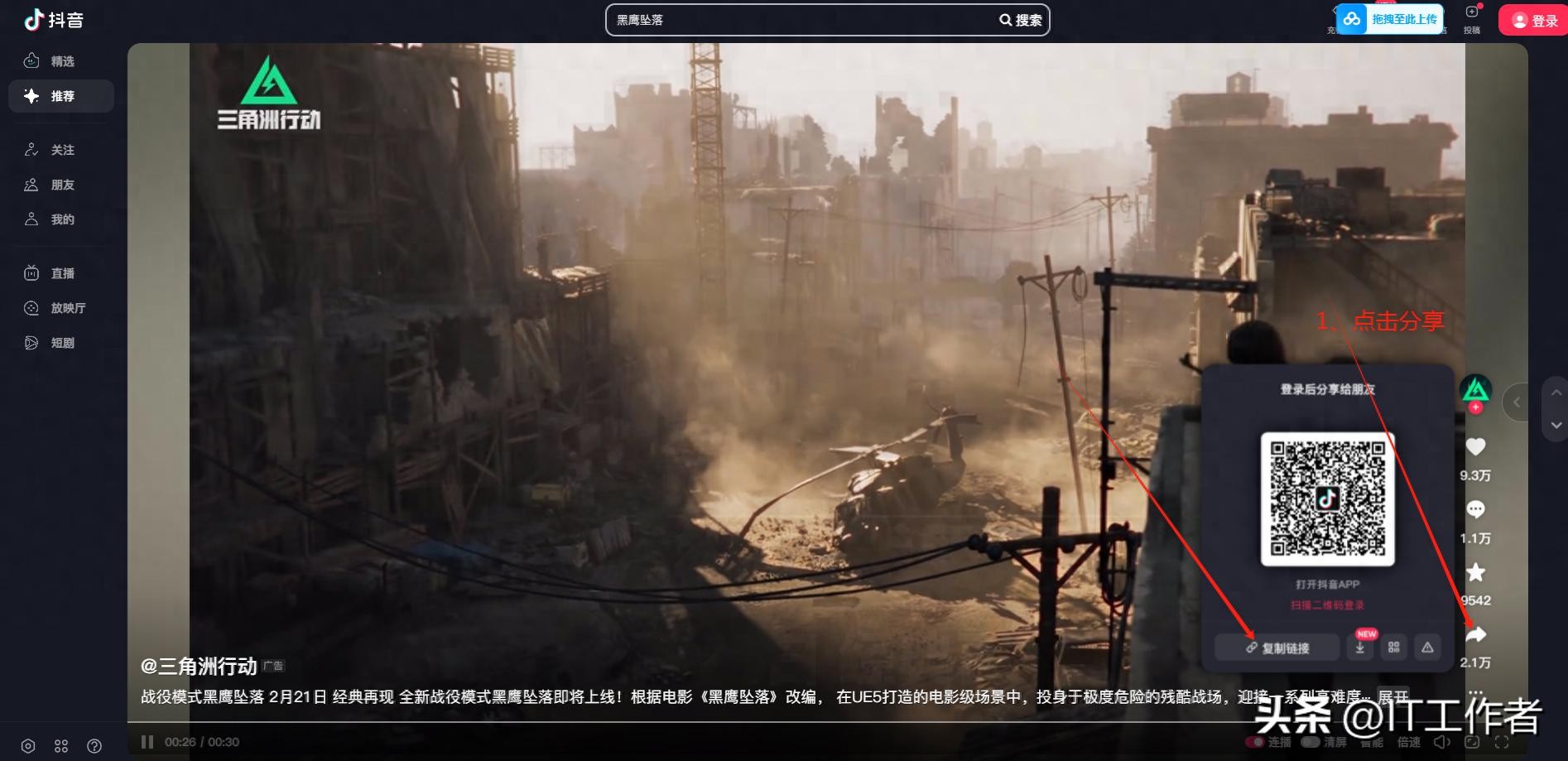 找到想下载的视频打开抖音,点开你要保存的视频 → 点击右下角「分享箭头」→ 选择「复制链接」