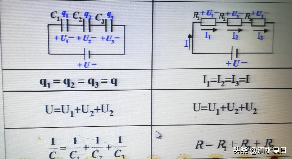 电路中电容的串联等电路相关参数的计算与电阻串联电路的参数计算如下图所示