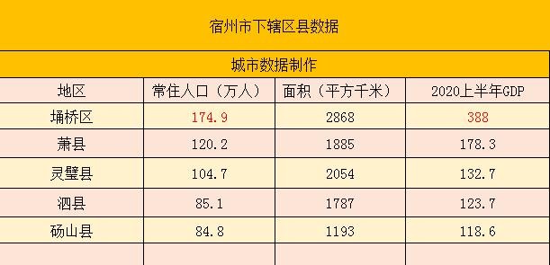 安徽宿州市下辖区县数据——埇桥区区第一,砀山县第五