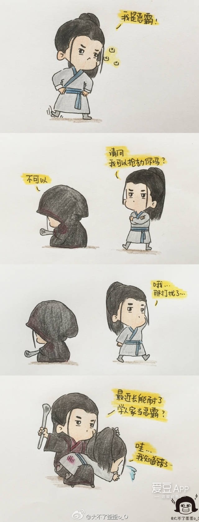 有蜜蜂脑洞大开,让沉浸在恶霸角色里的小凡上街“抢劫”。不过令小凡没有想到的是,被“抢劫”的不是别人,正是脾气不好的鬼厉大大!这下小凡可惨了,被教育了一番不说,还被鬼厉大大用烧火棍打屁股…呜呜,人家知道错了~