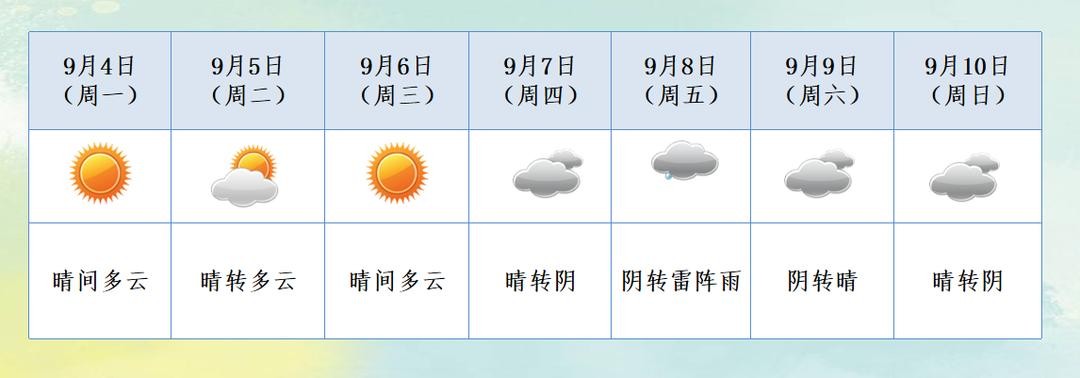 周四白天以晴为主,体感仍较热,高温32℃。周四的夜间天气转阴,周五将迎来一次雷阵雨过程。气温下降,最高温28℃。