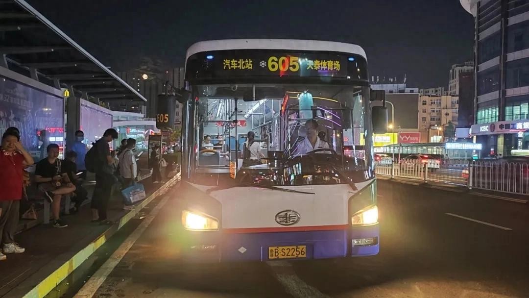 “我们家住在汽车北站附近,平时坐605路回家最方便,去李村夜市游玩总是不尽兴,就怕时间太晚没车了,605延时后方便多了。”李女士欣喜地表示自己是“夜行者”,最喜欢到夜市感受烟火气,公交延时服务让她可以更加放心游玩。