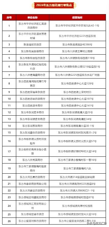 过年烟花哪里买?东方公布26个烟花爆竹零售点