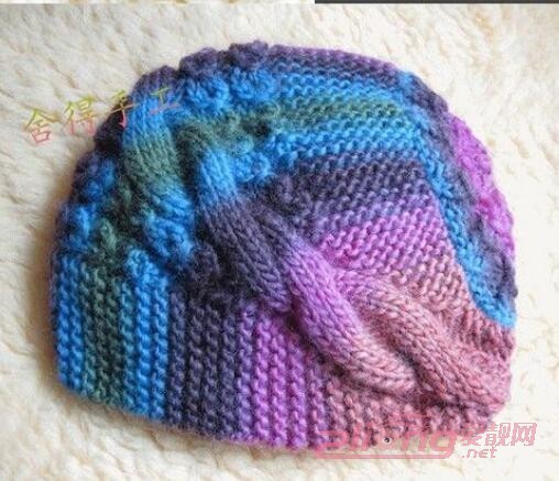 中老年彩色麻花帽子编织方法图解