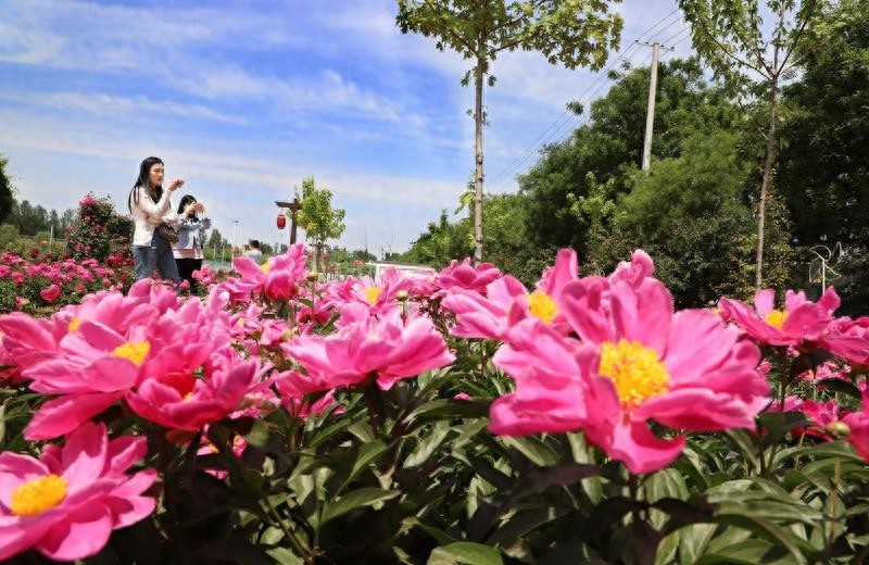 隋唐紫斑牡丹产业园位于泊头市王武镇唐庄村西南。近年来,泊头市王武镇依托大运河文化带建设,结合农村人居环境面貌提升,对大运河沿线村庄进行重点打造。乘着大运河文化带建设的东风,隋唐紫斑牡丹产业园不断发展壮大起来。据了解,产业园自2016年开始种植牡丹,目前牡丹种植面积达到200多亩、50多个品种。同时,为实现产业融合发展,产业园还开发出牡丹花蕊茶、牡丹食用油、牡丹花酒等产品,拉动当地经济,促进农民增收。今年,牡丹盛花期预计可持续到5月20日。