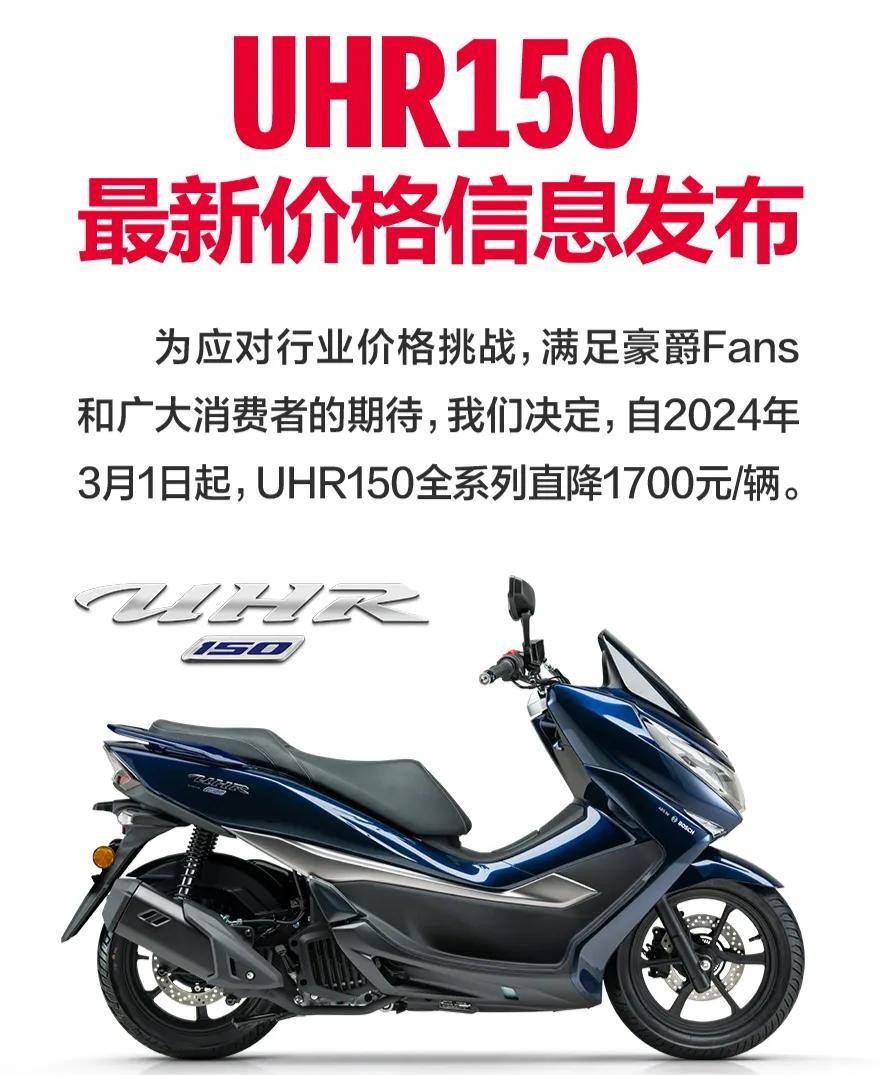 今天!就在今天!豪爵顶住压力又放“大”招了!为应对行业价格挑战,满足豪爵Fans和广大消费者的期待,我们决定,自2024年3月1日起,UHR150全系列直降1700元/辆!看来是前阵子500油补,800油补的促销信息没能起到燃爆全场的预热作用!同是3月1日,豪爵没有再提10款车型油补正式开启的消息!反而宣传起了UHR150的促销活动!