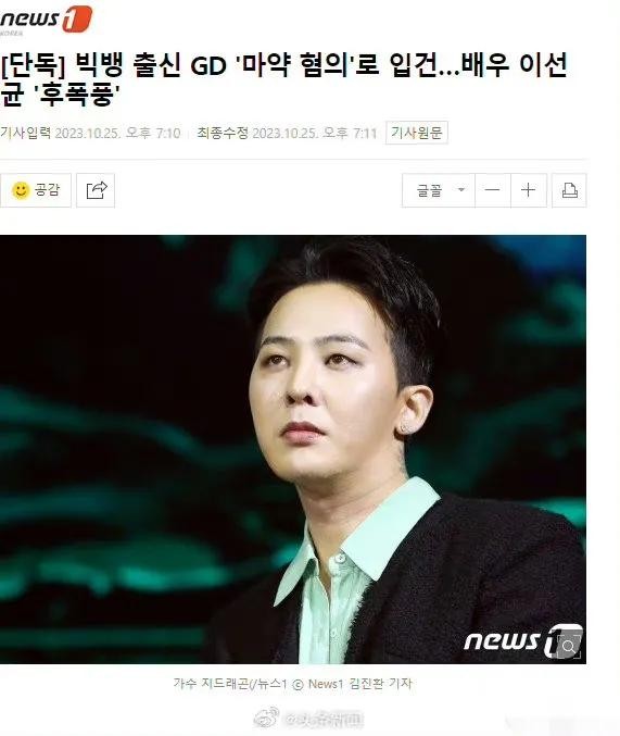 BIGBANG#权志龙#"吸毒嫌疑"被立案 #权志龙涉嫌吸毒#继涉嫌吸毒的演员李善均(48岁)被立案后,BIGBANG组合出身的GD权志龙也被追加立案。