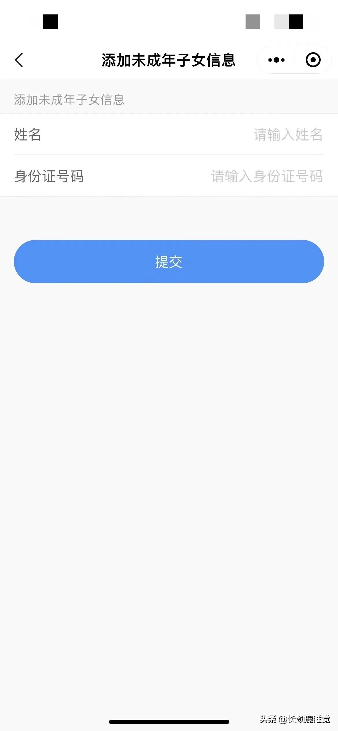 6.填写未成年子女的姓名和身份证号,点击提交。