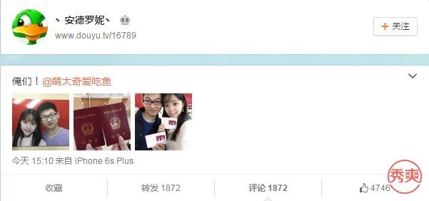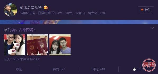 去年12月曾大秀恩爱和婚纱照的炉石传说主播板娘和安德罗妮终于领证啦!两人也分别秀出了他们的结婚证。恭喜他们,以后的婚姻生活也要幸福噢!