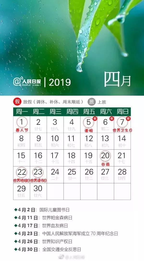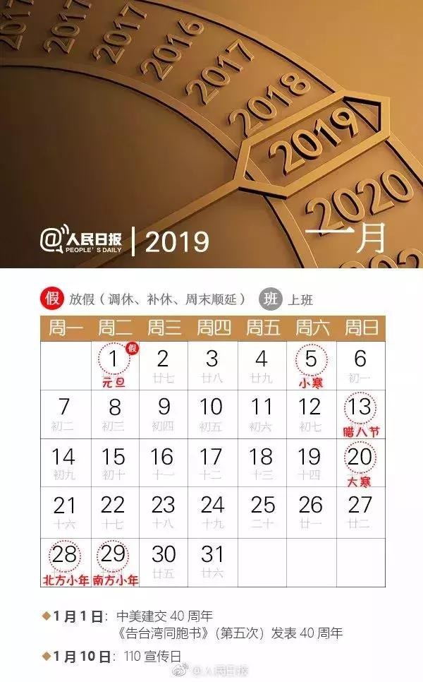 2019放假安排