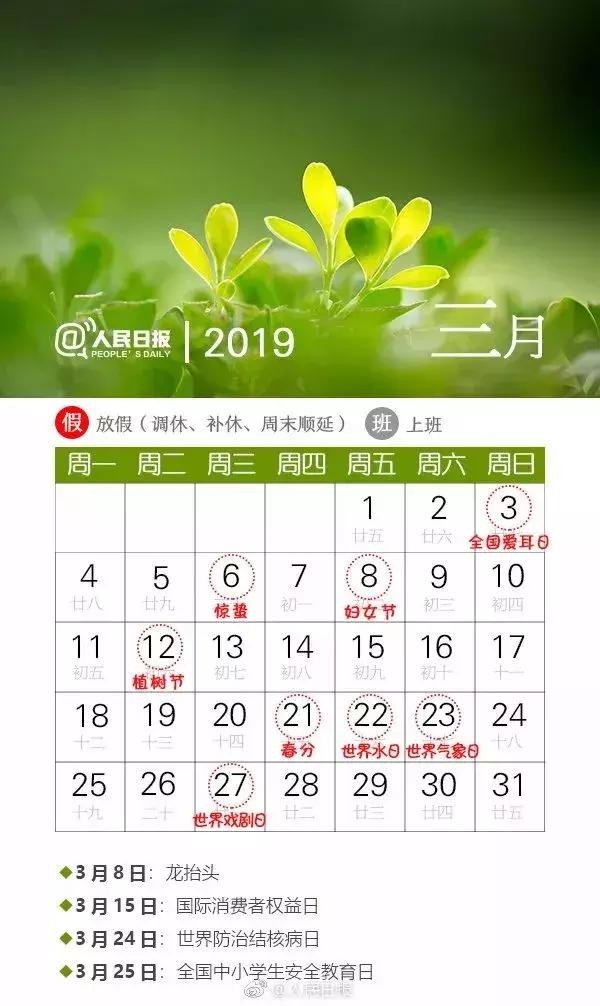 2019年节日日历,来看一下今年能过多少节~
