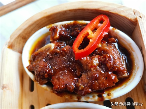 这又是一道广东名点,早茶基本上都会点。想要做好这道茶点的关键就在排骨的处理上,要先用食用碱和食粉轮流腌制,然后大量冲水(啤水),直到筋肉稍稍分离,这时排骨的肉质结构就完全破坏了,制作好的排骨会变得雪白光滑,肥瘦口感统一,无筋爽滑。记得吃这个时也要试下底下的香芋,那才是吸收精华的地方!