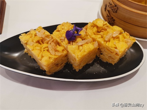 这个在茶楼也是常见的点心之一。吃的比较好吃的是白天鹅的榄仁萨其马,刚上的萨其马靠近一点就会闻上淡淡的鸡蛋香味。入口时萨其马口感酥松绵软,其和浓浓的蛋香味、蜂蜜糖浆的香味混合的香味便会不断的在你的舌尖上萦绕升腾,香甜可口却不腻。