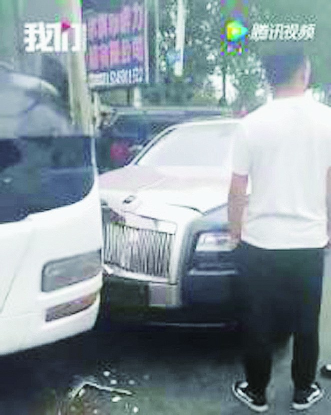劳斯莱斯撞上公交车 交警:二手的,损坏不严重
