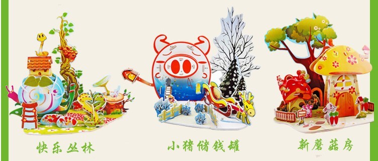 立体拼图可选样式非常多,城堡类,卡通动漫类,军事模型类等等。