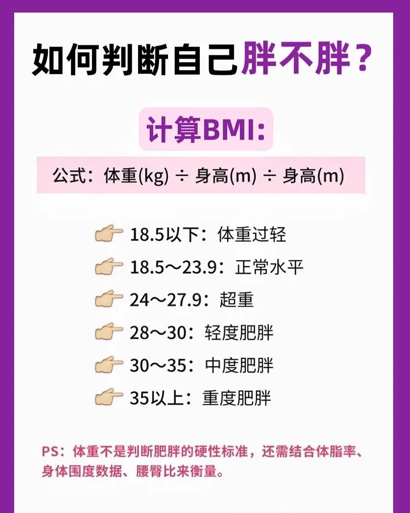 2023女生标准体重表快看你超重了吗?大家可以算一算自己的BMI是多少? 但是BMI不是判断肥胖的唯一标准,还要根据体脂率、腰围、腰臀比等来衡量。比如有些姐妹体重在正常范围,甚至偏轻,但肚子还有一层肉,胖乎乎的,这说明体脂率较高,肌肉率不足,女性如果腰围超过80以上,就属于腹型肥胖了。#图文伙伴计划 #减肥 #瘦 #体重管理