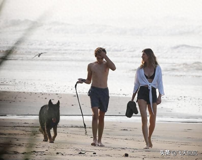 吉赛尔·邦辰穿性感比基尼大秀美腿 与儿子遛狗散步
