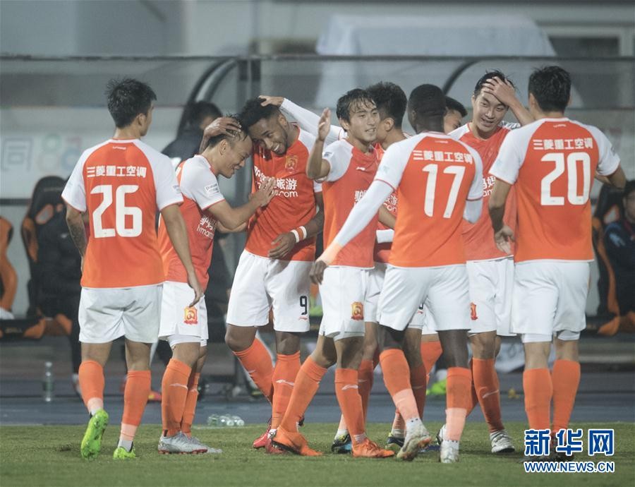 ↑10月20日,武汉卓尔队球员拉斐尔(左三)进球后与队友庆祝。 当日,在2018赛季中甲联赛第28轮比赛中,武汉卓尔队主场对阵梅州客家队。 新华社记者肖艺九摄