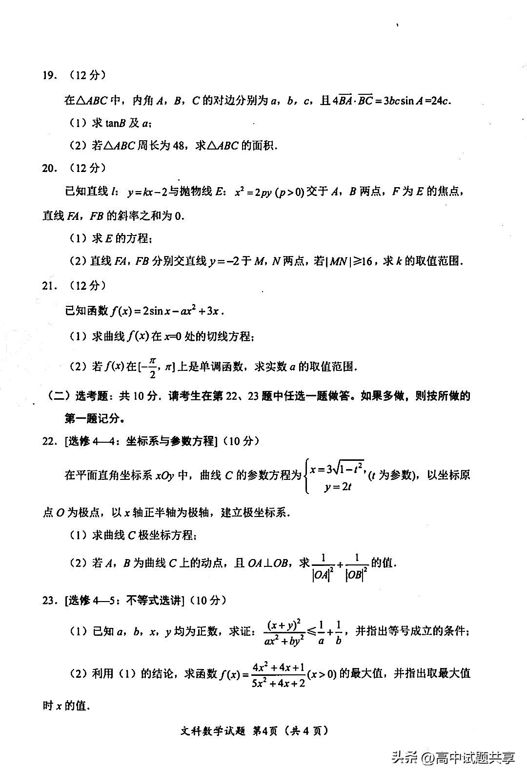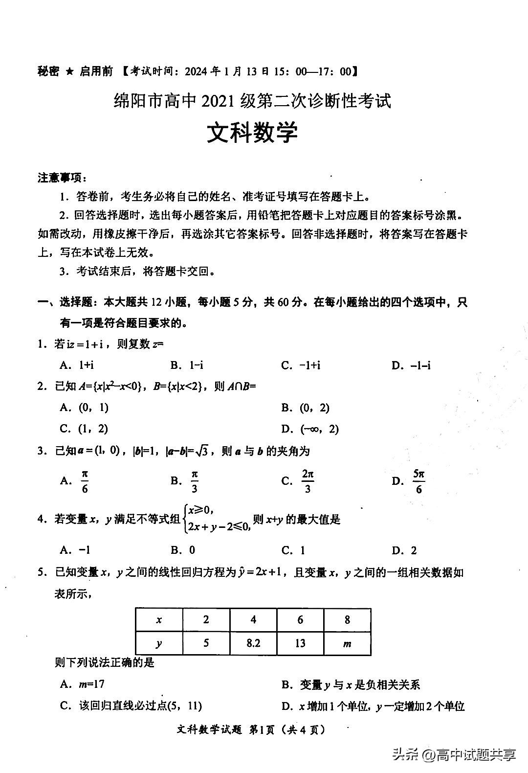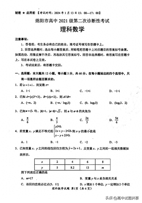 2024届绵阳二诊试题及答案汇总