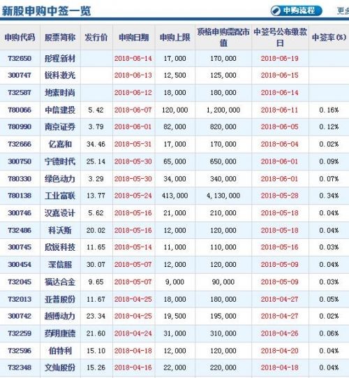 2018年6月最新新股上市申购一览表 8只新股票IPO发行一览表