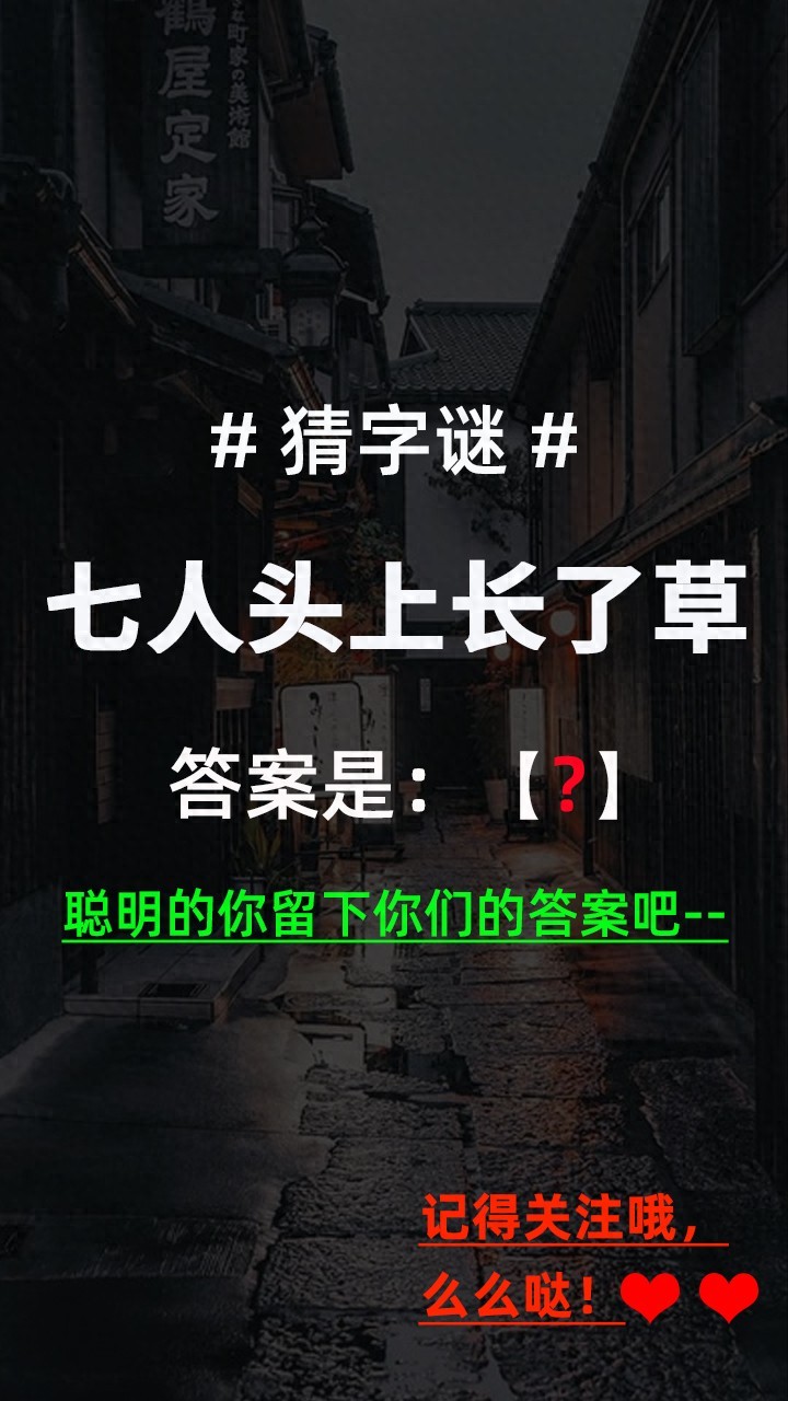 猜字谜:七人头上长了草(打一字),聪明的你留下你们的答案吧