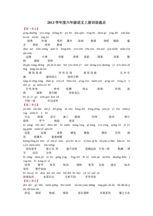 2013学年度六年级语文上册词语盘点 人教新课标版 【全册】_页面_1