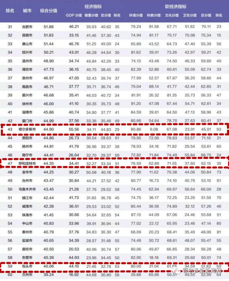 鄂尔多斯、呼和浩特、包头分别位列