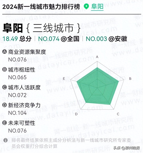 刚刚发布!阜阳,三线城市!安徽第3!