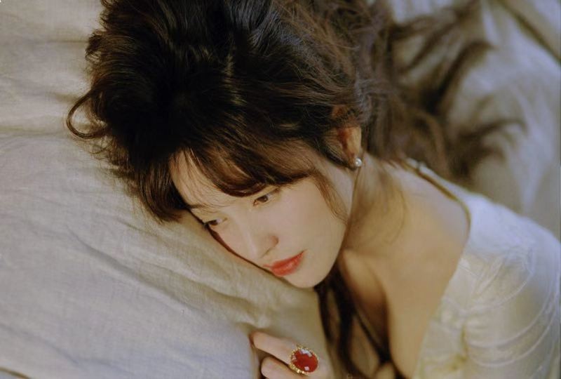 日前,金莎发布一组复古风格写真,照片中金莎穿白色珍珠装饰长裙,棕色长卷发垂下文艺甜美,搭配复古戒指项链十分精致。