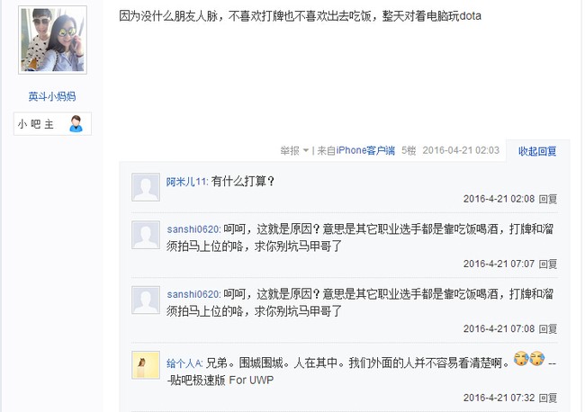 PS:就算队伍有隔阂,进退两难,在没有征得老板同意的情况下擅自离队,马甲哥自己也有责任。想想自己的TI梦,想想身边的爱你的人,你就甘心吗?