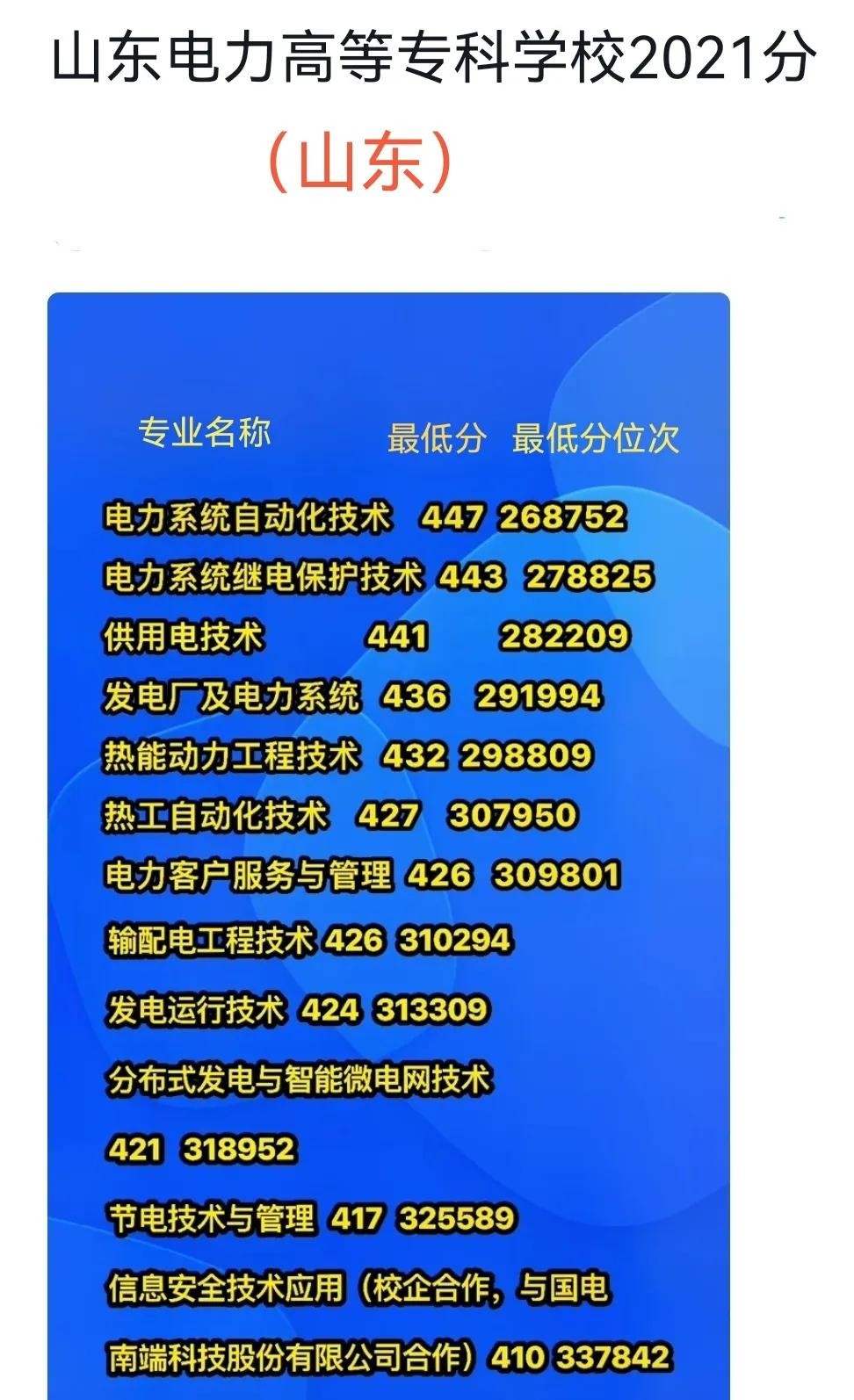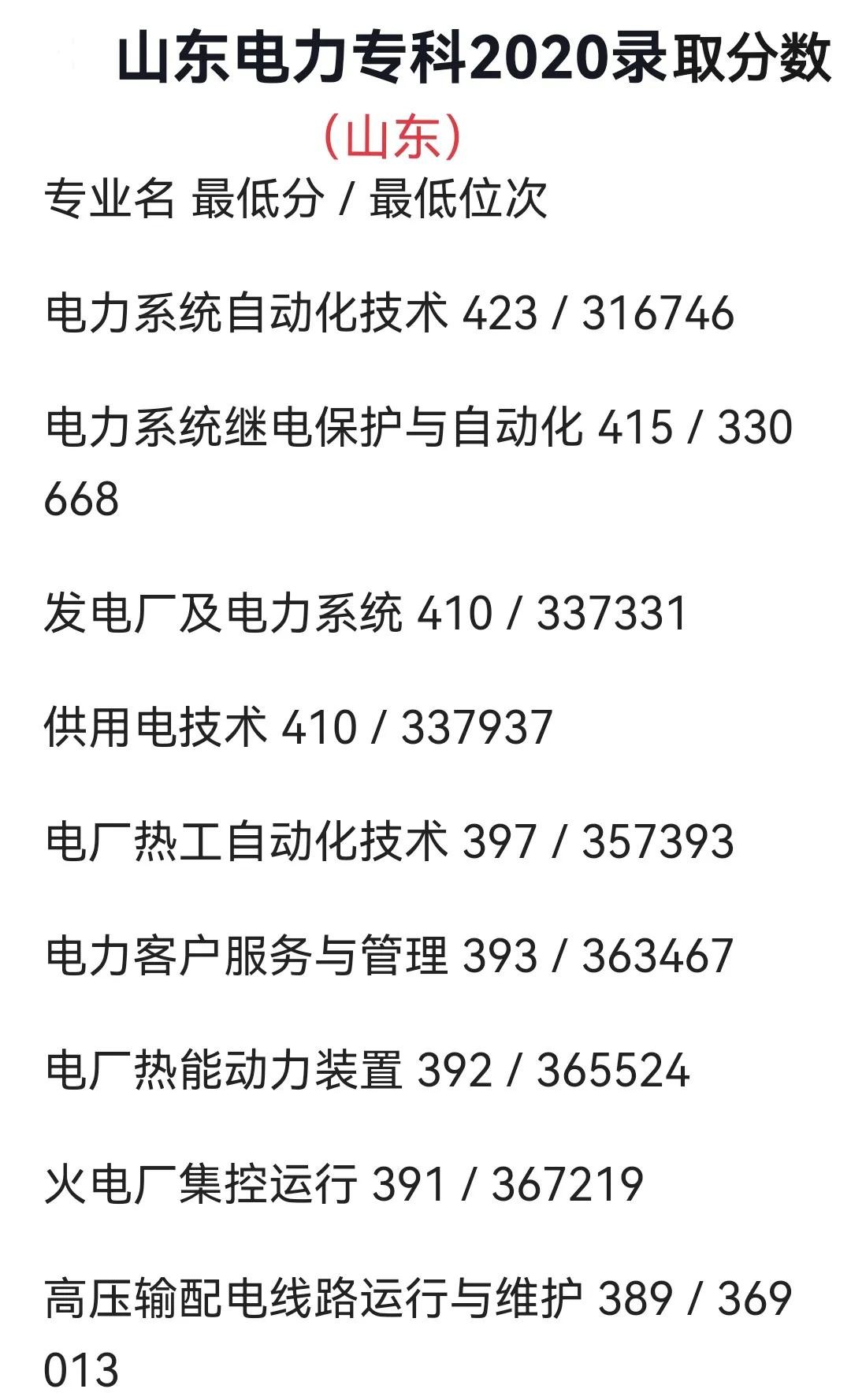 2020/2021山东电力高等专科学校在山东的录取分数: