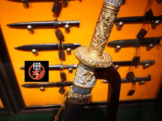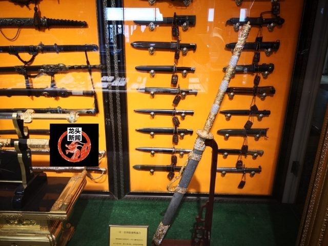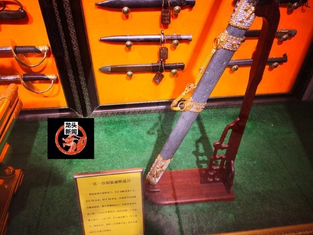 一把康熙使用的“战刀”,在哈尔滨道台府古玩城展出。这是按着康熙使用的战刀一比一比例复制的。