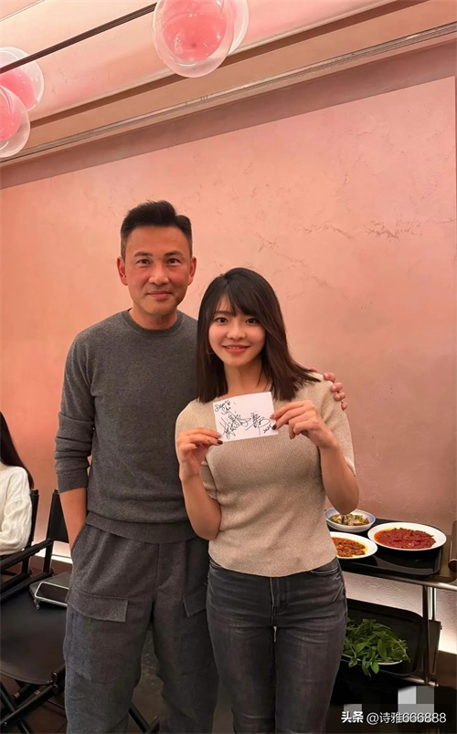 友人晒和林文龙郭可盈一家聚餐合影,55岁郭可盈穿粉色毛衣状态好