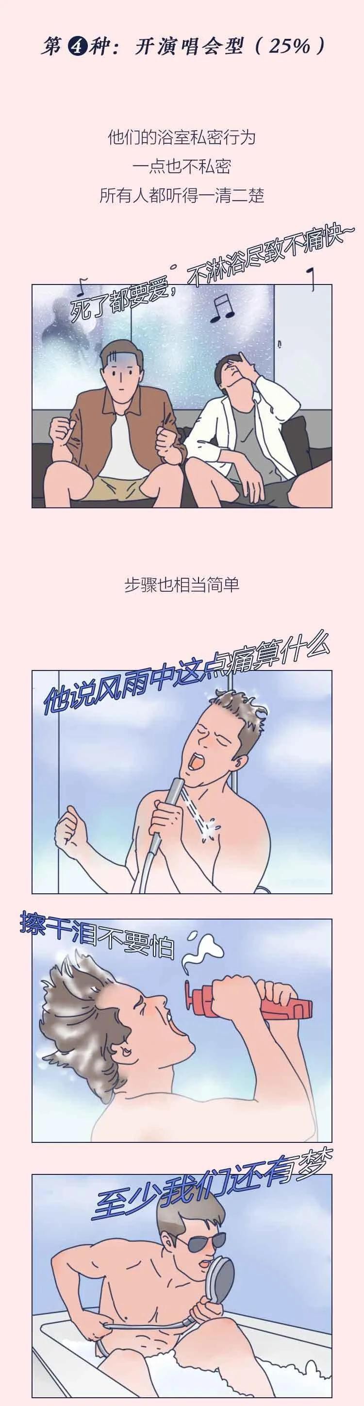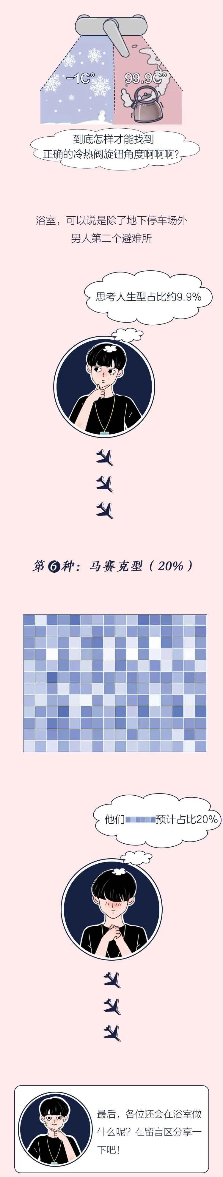 那么,男生洗澡的这一个小时,到底在浴室悄悄干什么?一组漫画带你了解男生洗澡全过程。